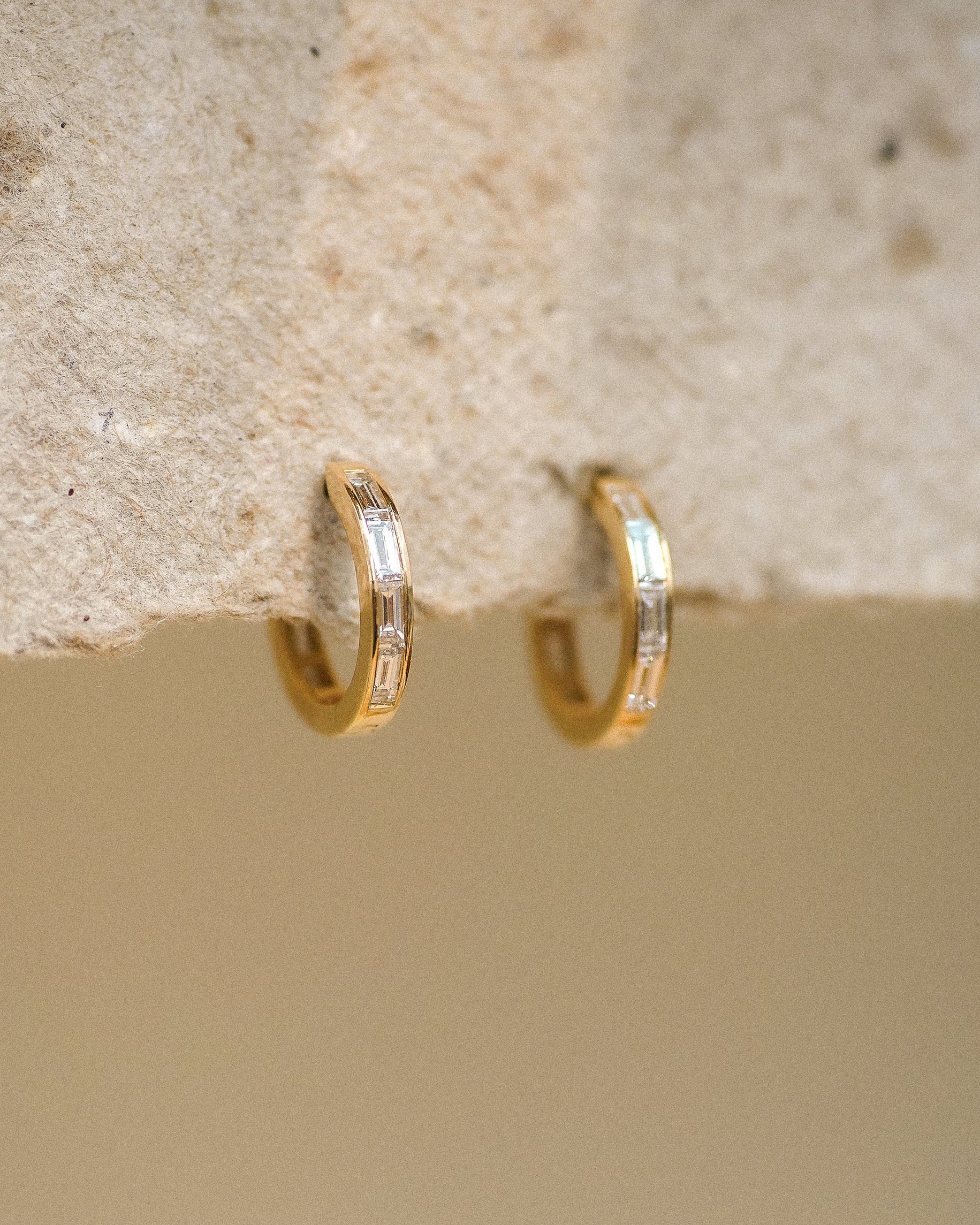 Channel-set baguette lab-grown diamonds framed in 14K solid gold. Sleek, modern, and defined by clean architectural lines.