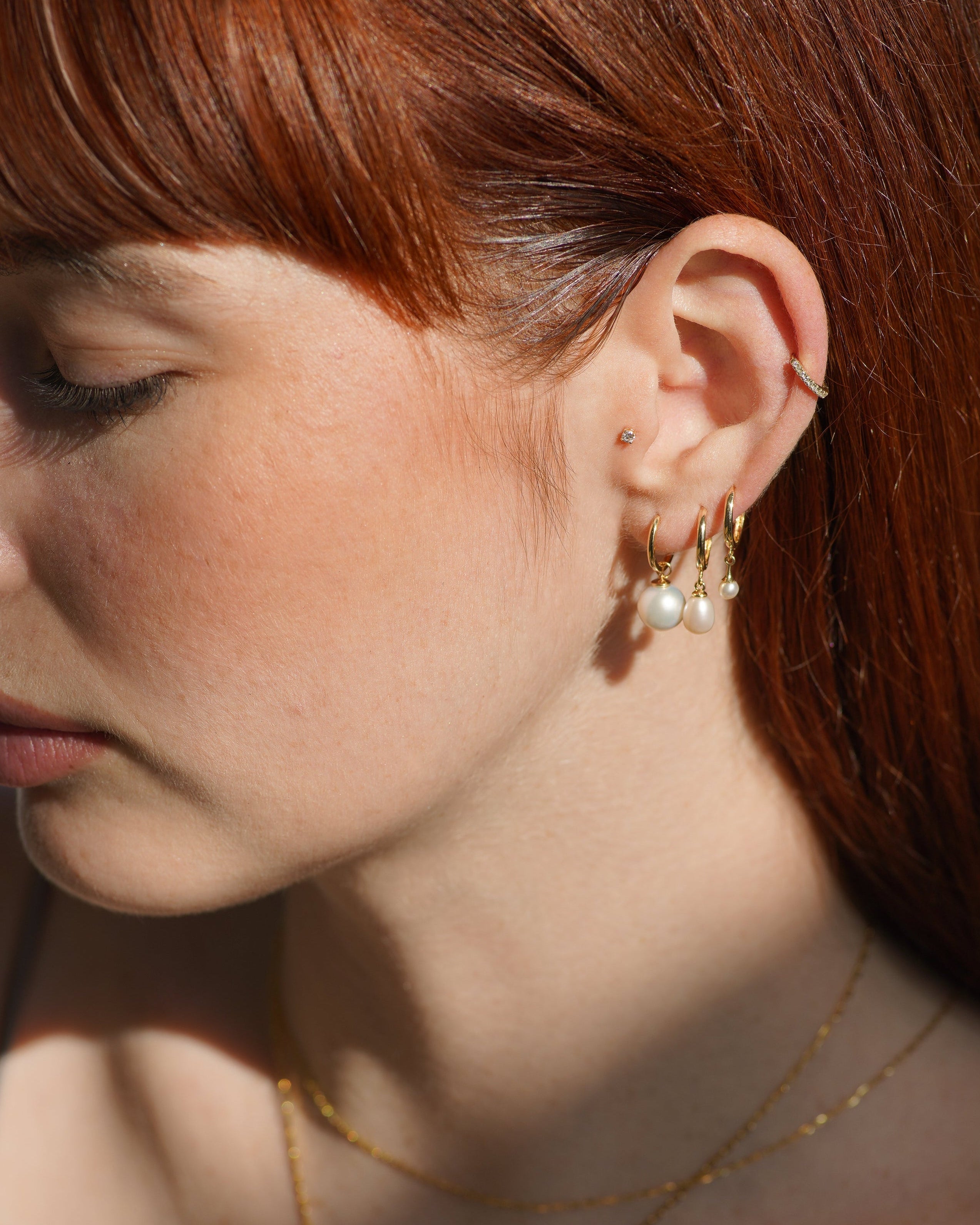 Timeless elegance meets modern sophistication. This 14K solid gold hoop is embellished with dazzling diamonds, available in both white and yellow gold variations. A captivating design that exudes luxury and refinement.