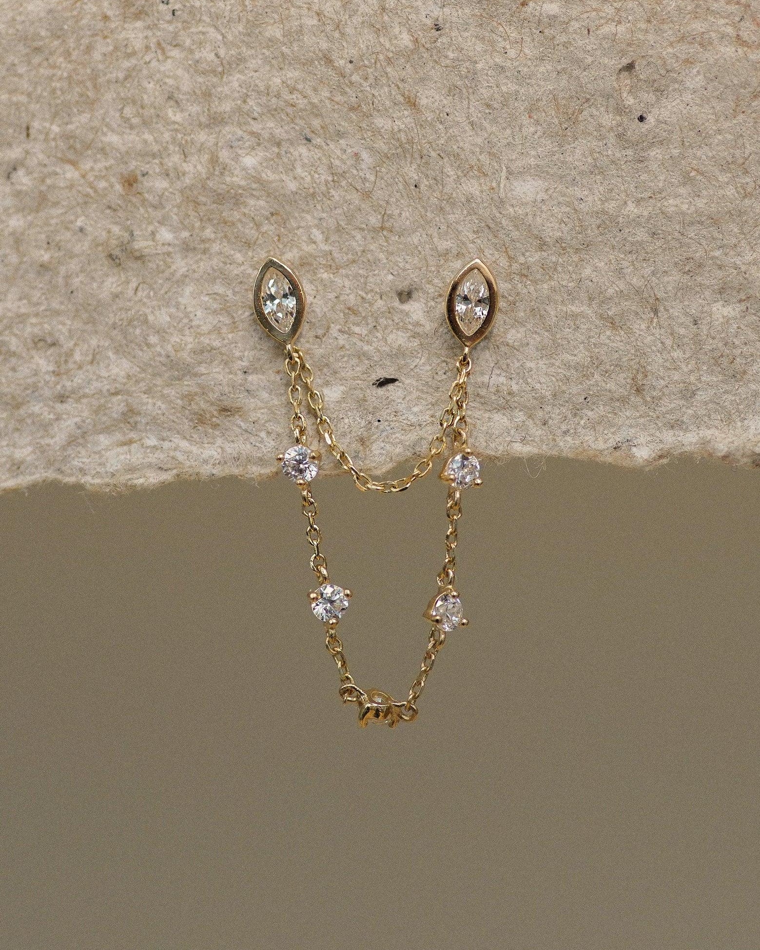 Kim The earring chain is absolutely beautiful and great quality. I also know this is small but I LOVE the backing that comes with it! So comfortable!!