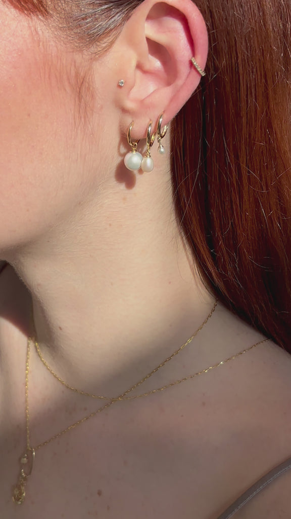 Elegant 14k Solid Gold Pearl Drop Earrings – the perfect gift for a loved one or a timeless addition to wedding day jewelry. Crafted in gold with delicate fresh water pearls, these earrings bring classic sophistication to any special occasion!