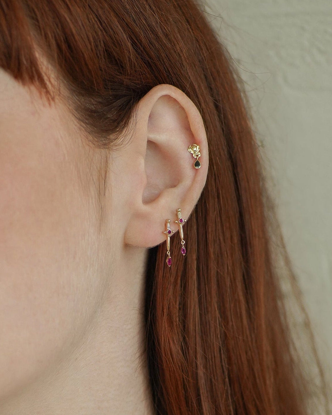 14K Solid Gold Ruby Dagger Stud Earrings (Pair, Single) – Anygolds