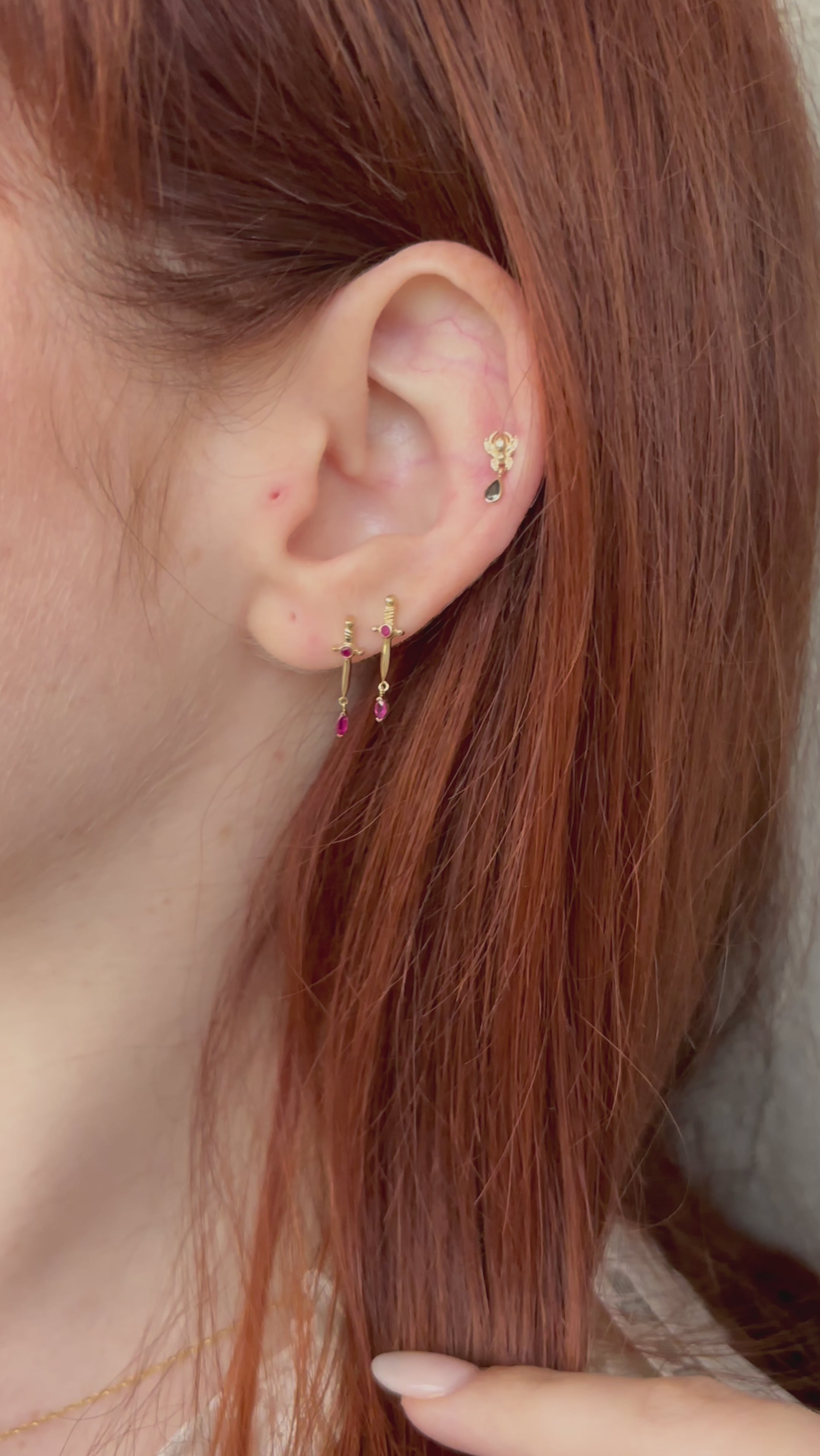 Ruby Dagger Stud Drop Earrings (Pair, Single)