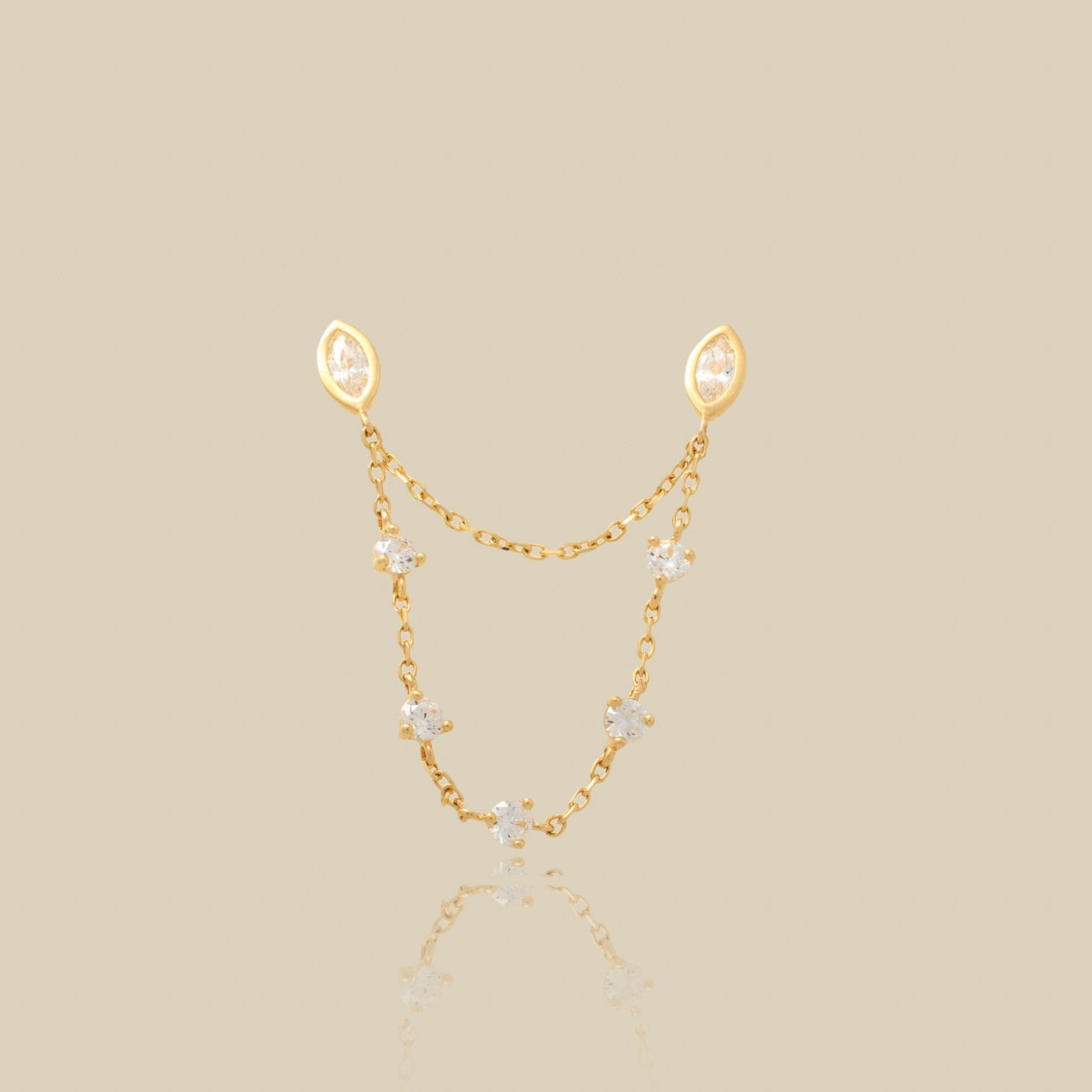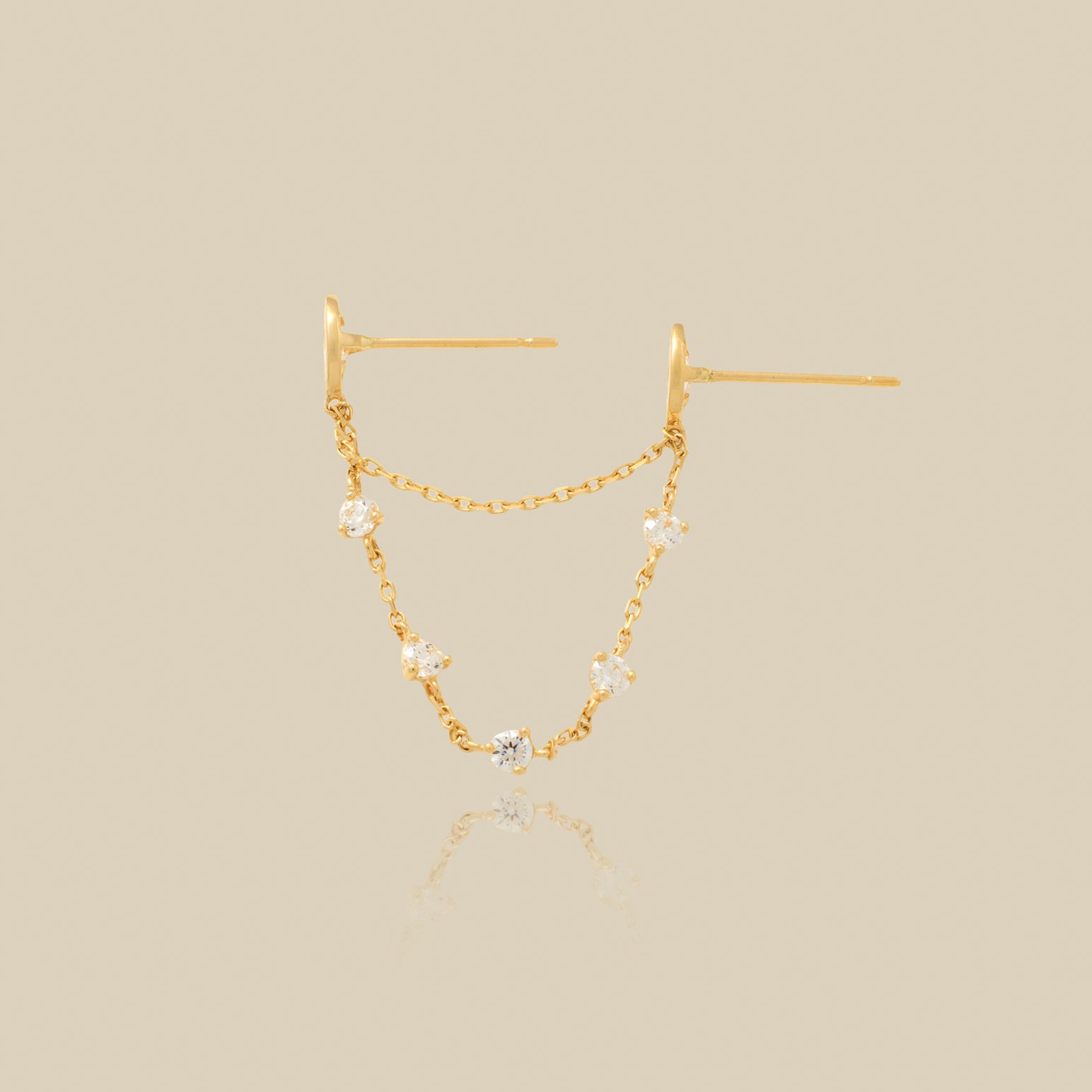 14K Solid Gold Crystal Web Chain Double Stud Earring – Anygolds