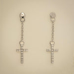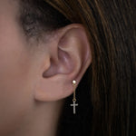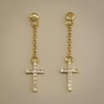 Elevate your look with the Diamond Cross Chain Drop Earrings, crafted from 14K real solid gold and featuring natural diamonds. These dainty drop earrings showcase a delicate chain paired with a sparkling cross pendant, creating a timeless design perfect for both everyday wear and special occasions.