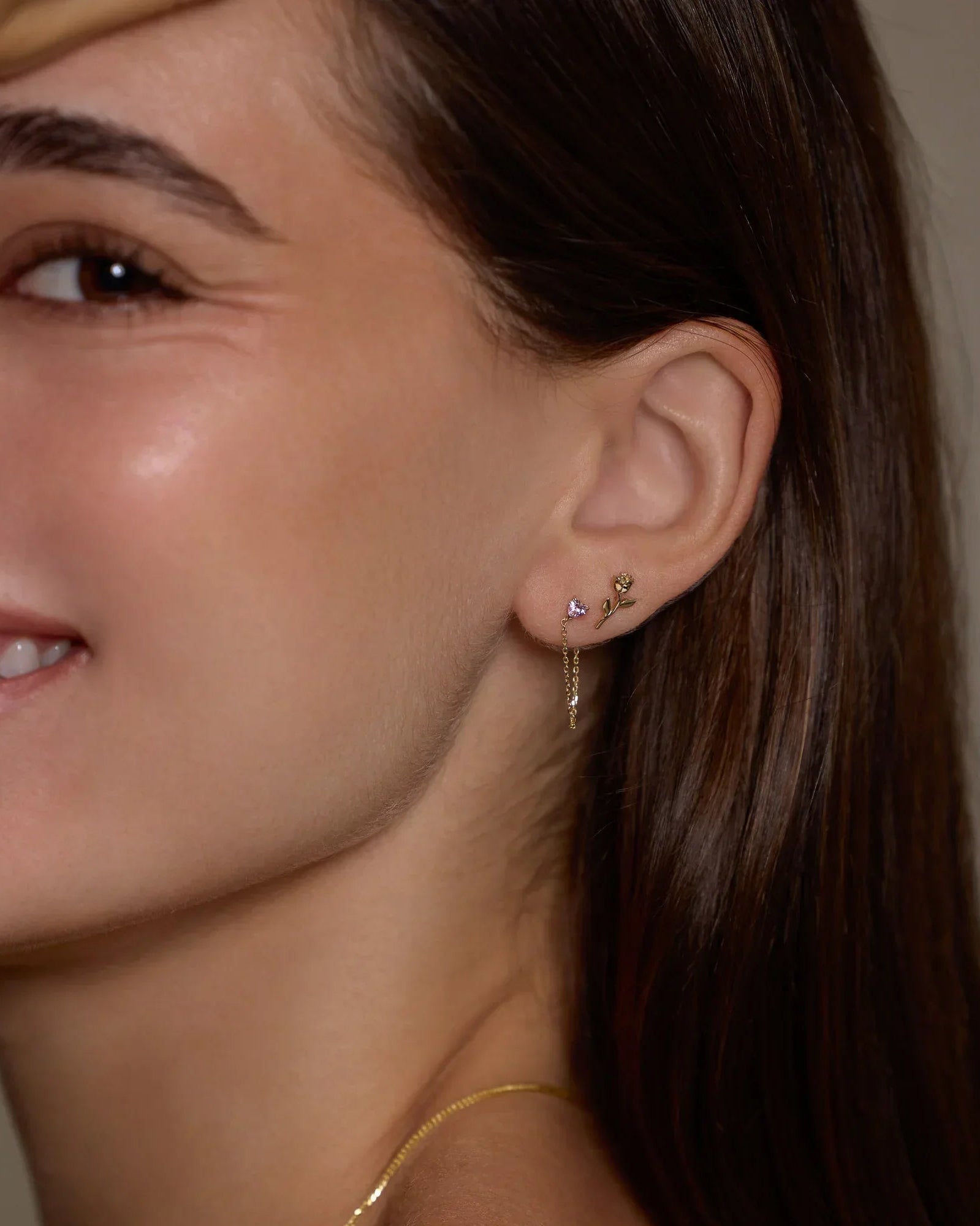 14K Solid Gold Petal Rose Stud Earrings – Anygolds