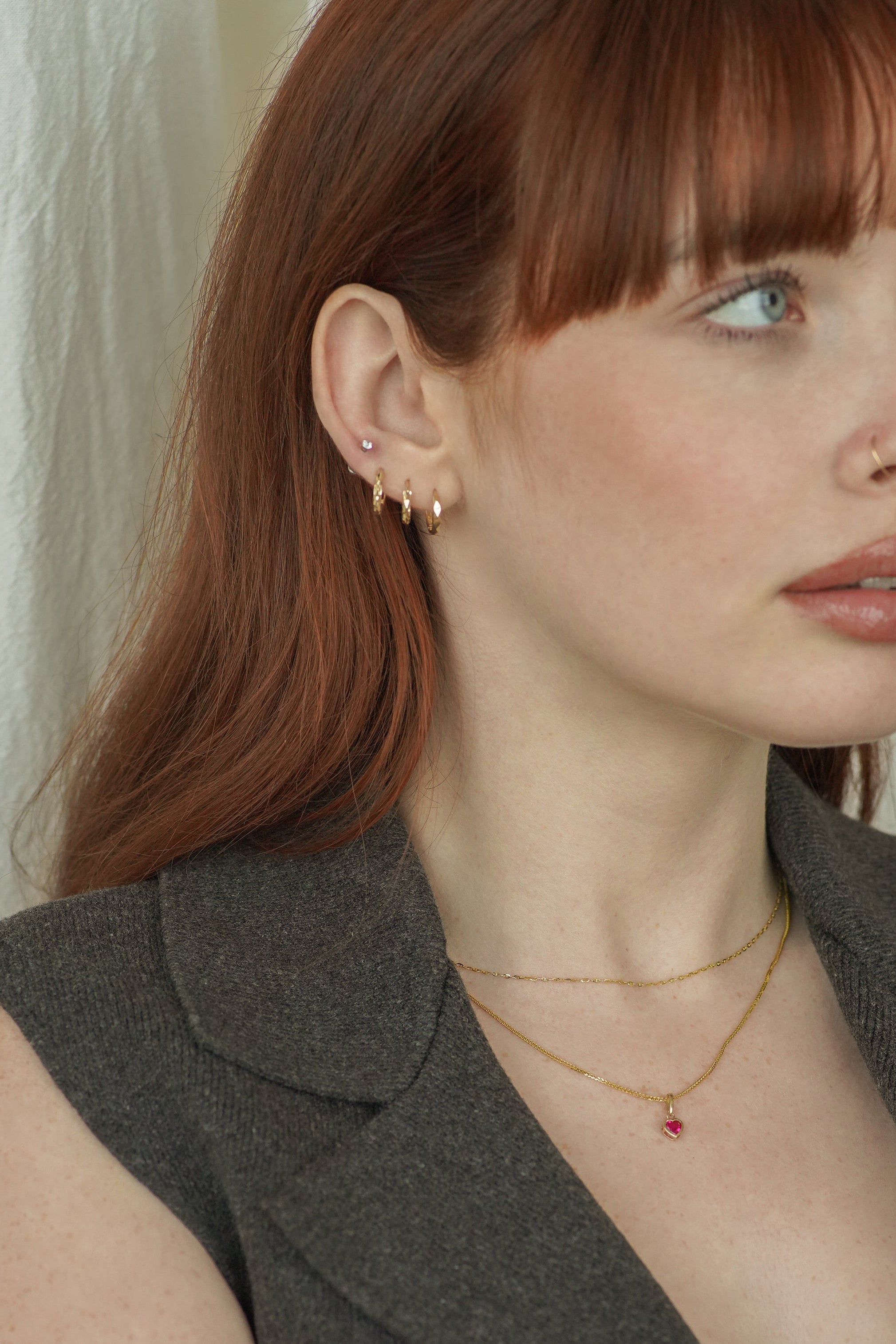 Sleek and polished, these 14k solid gold Sleek Diamond-Cut Mini Hoop Huggie Earrings offer a modern look with a touch of texture. Perfect for adding understated elegance to any ensemble.