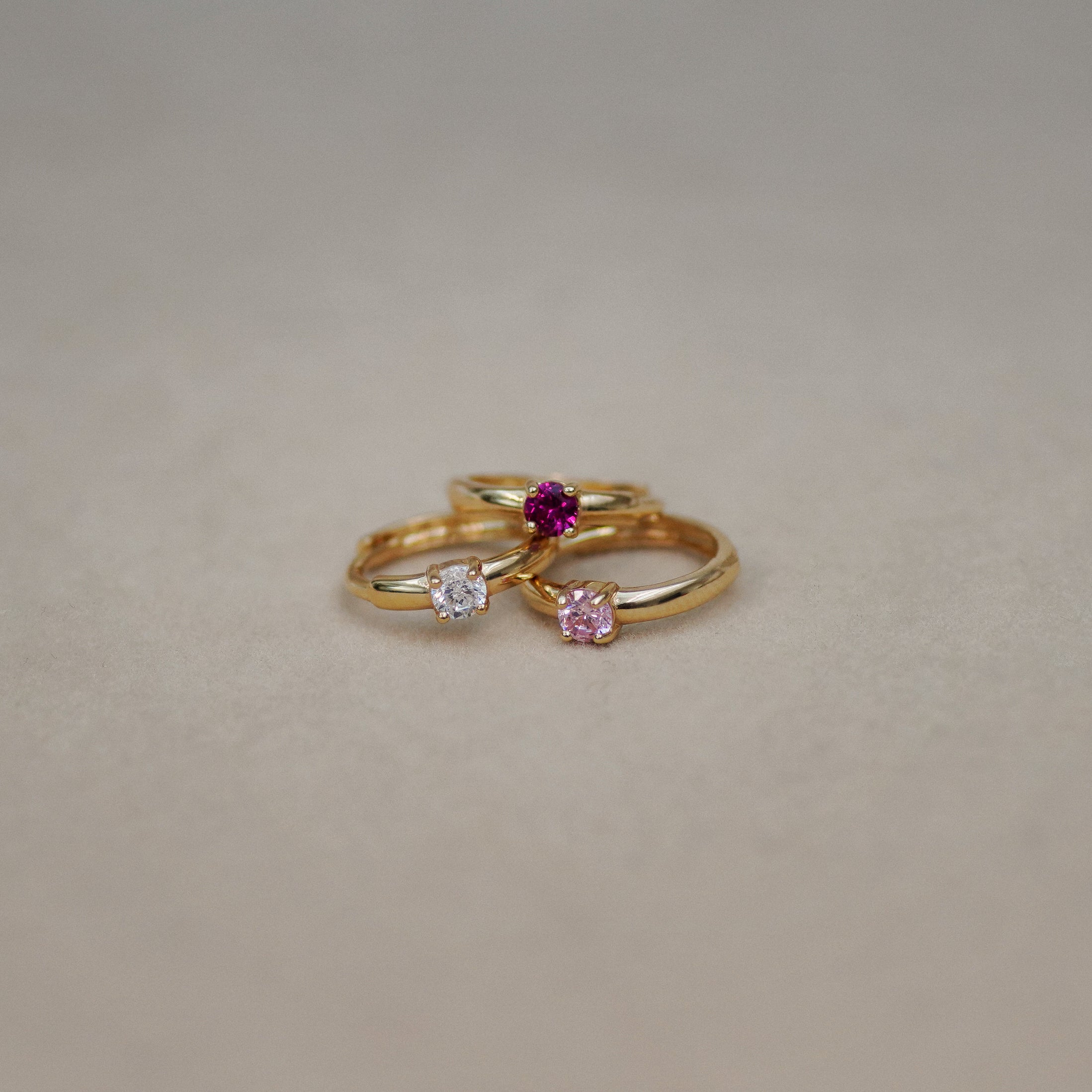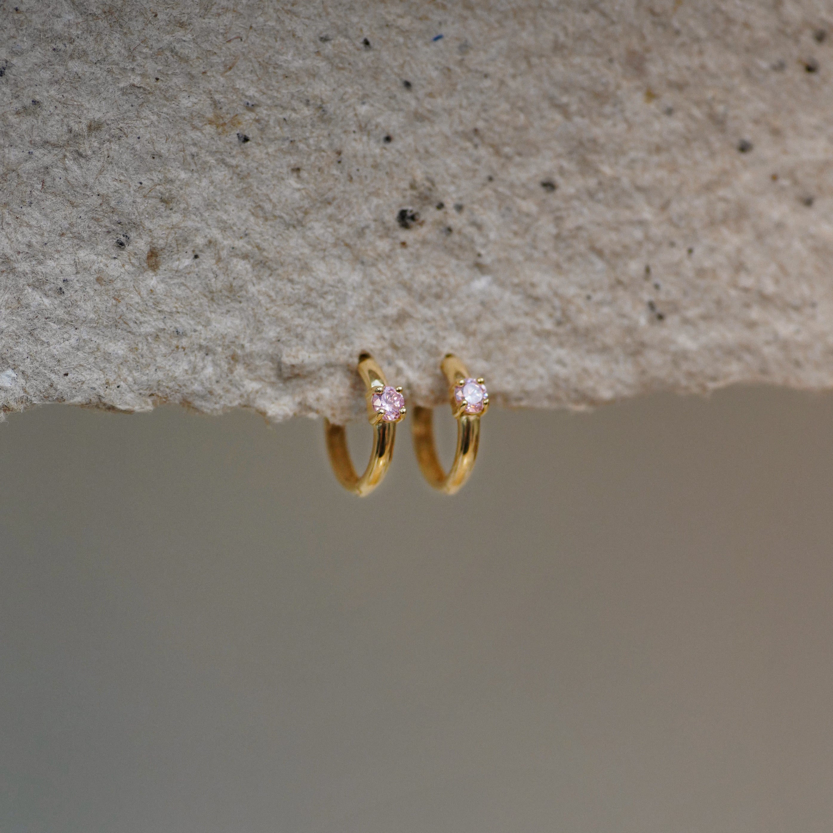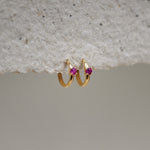 Round Color Stone Hoop Earrings (Ruby, Pink, Clear)