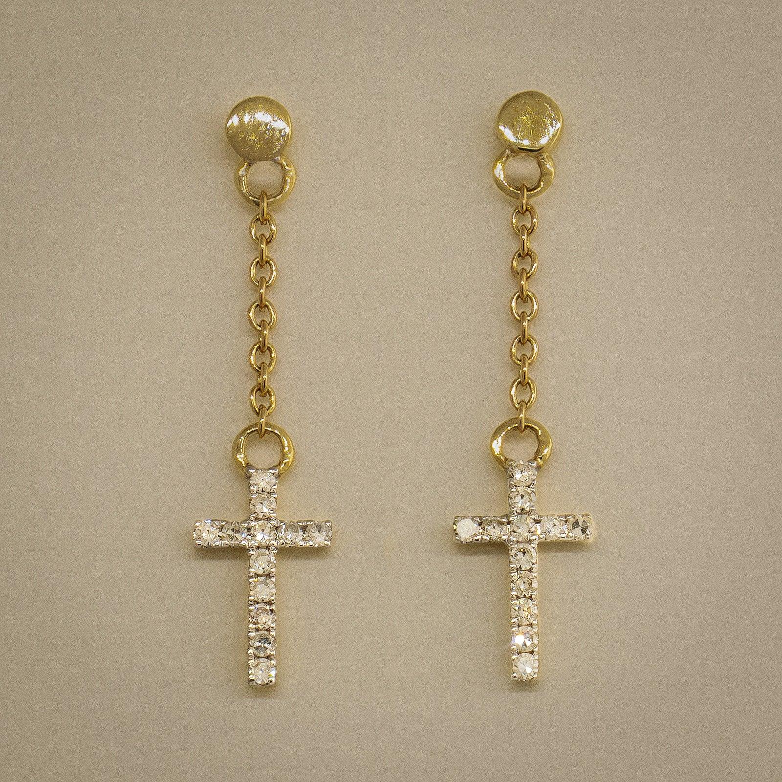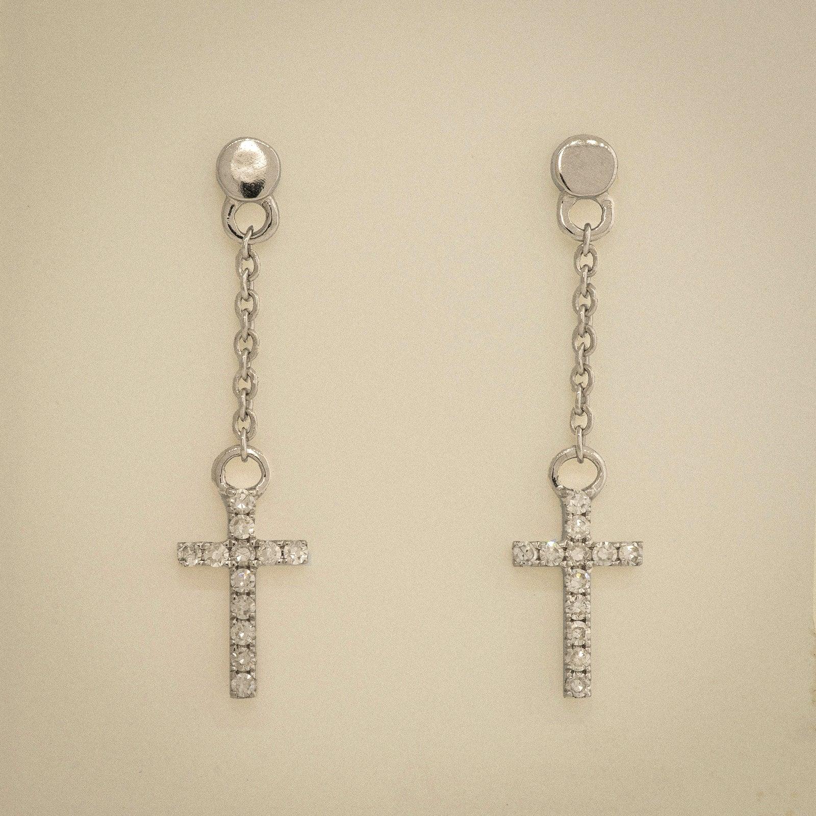 Diamond Cross Chain Drop Earrings