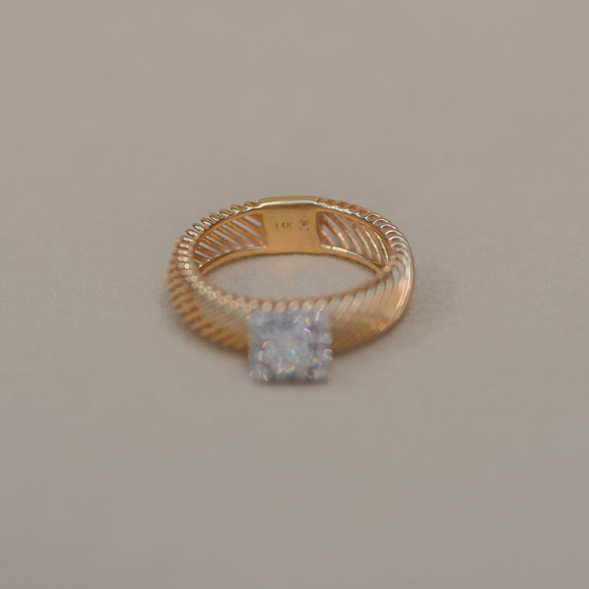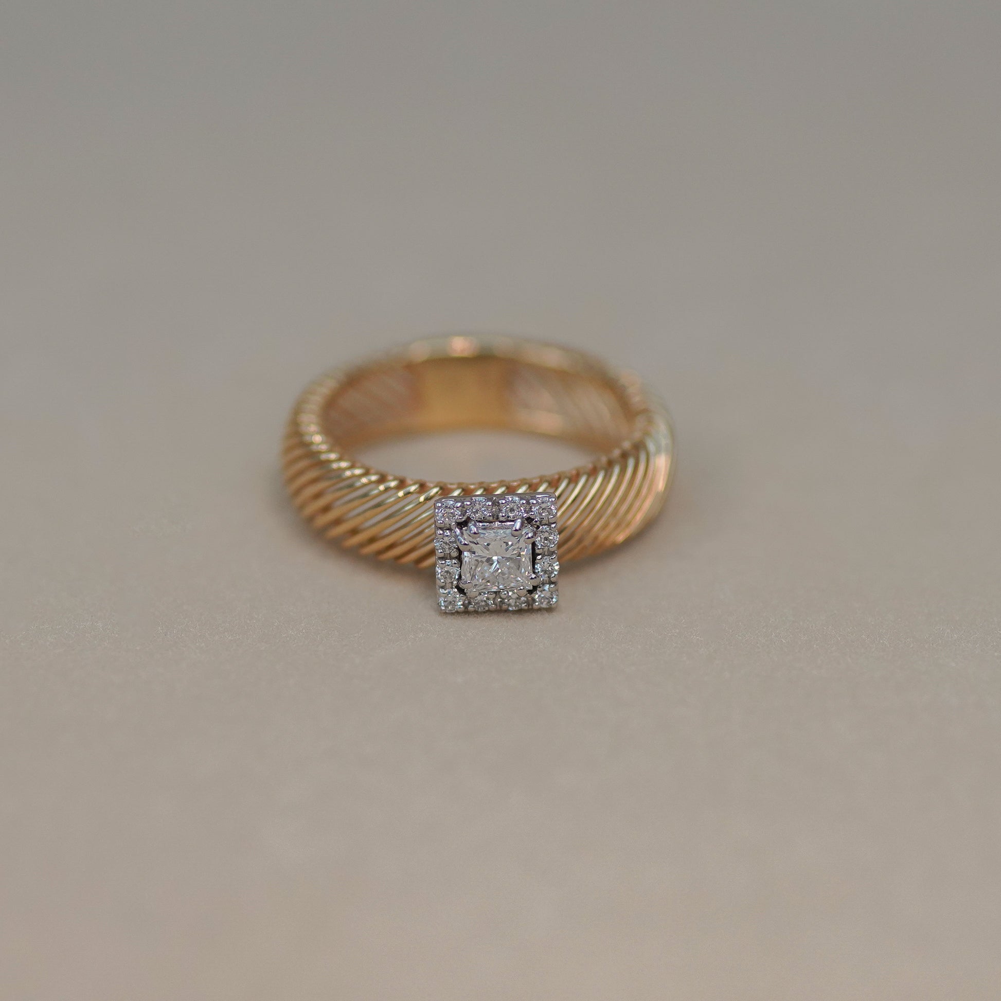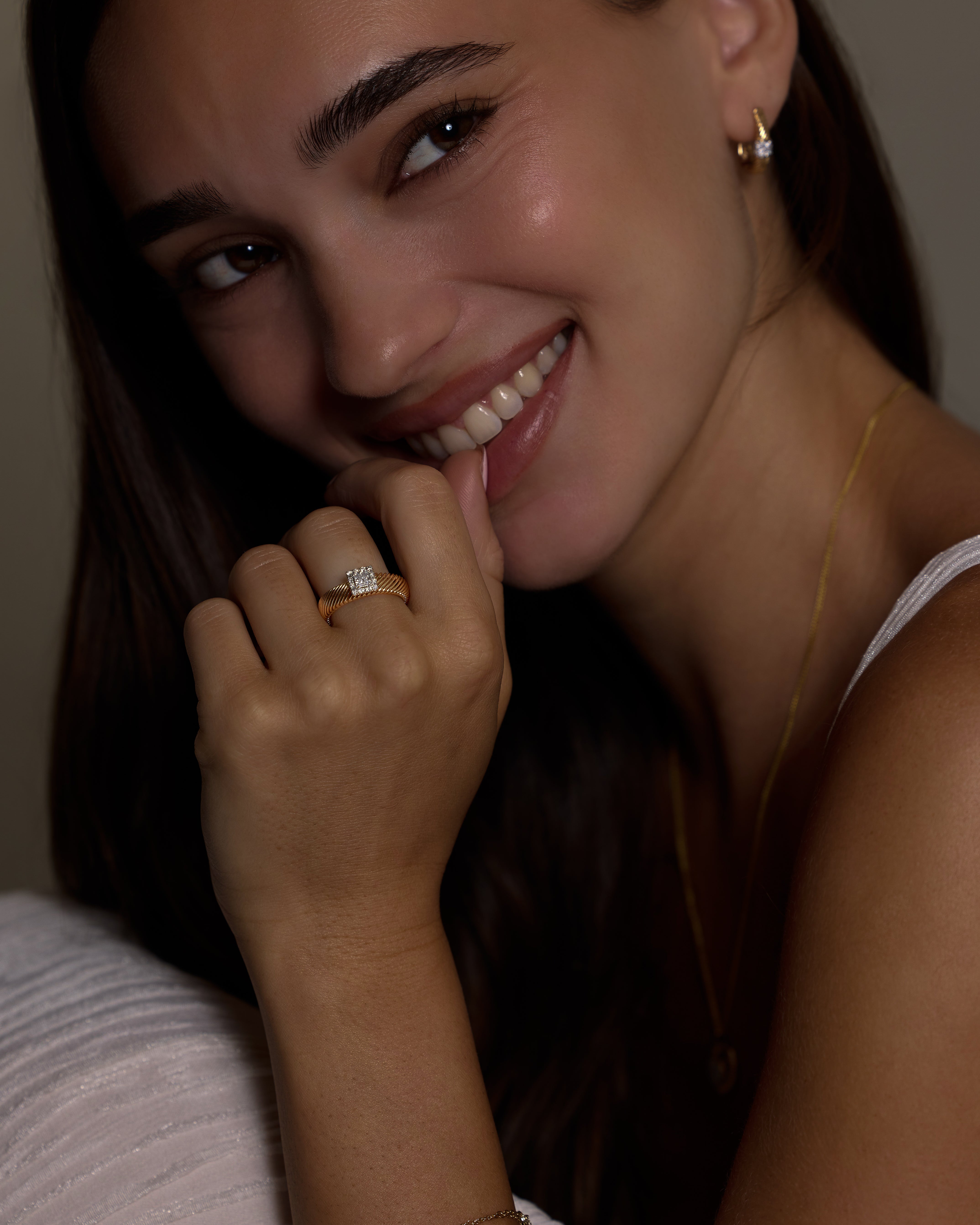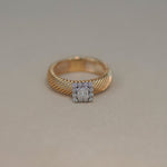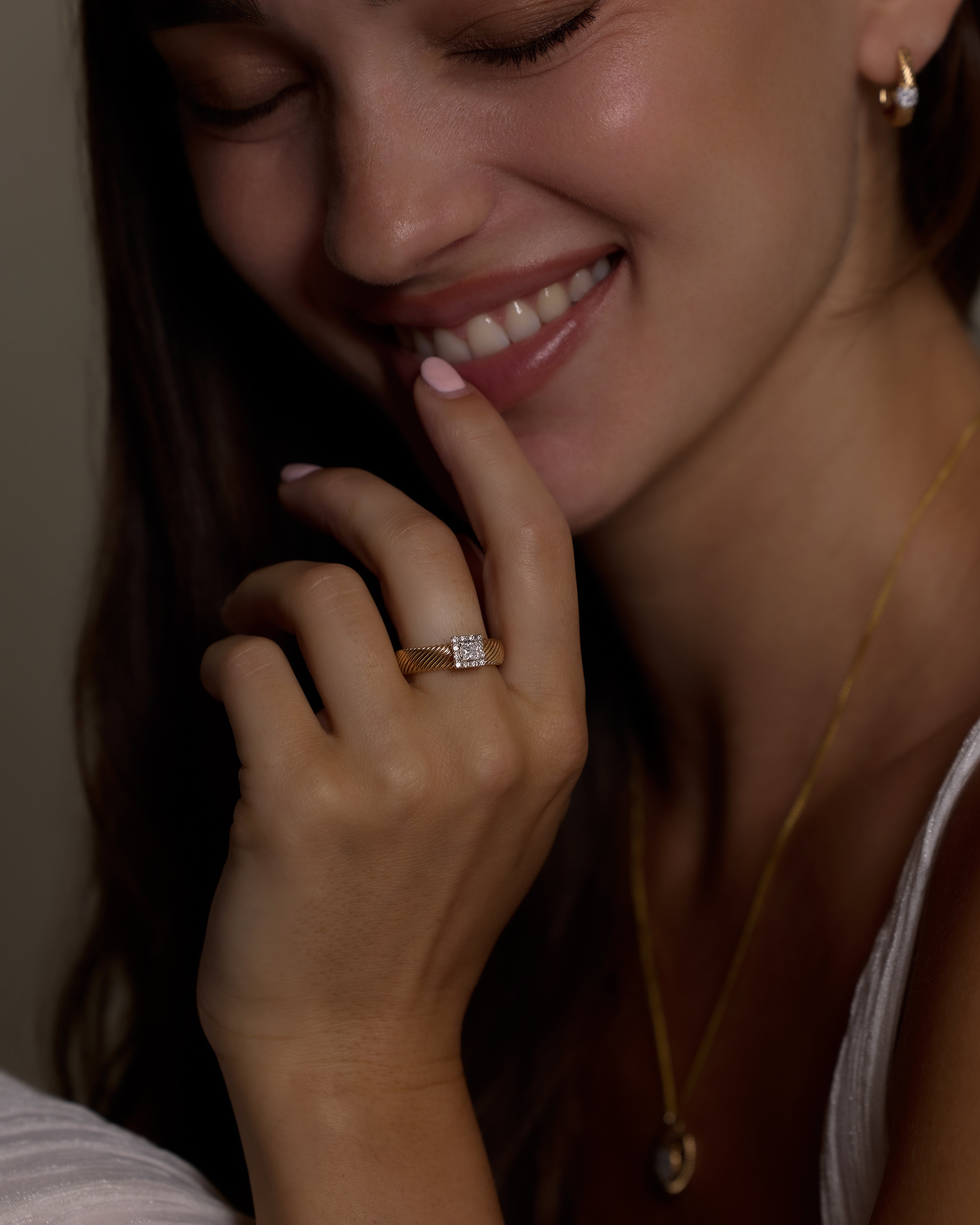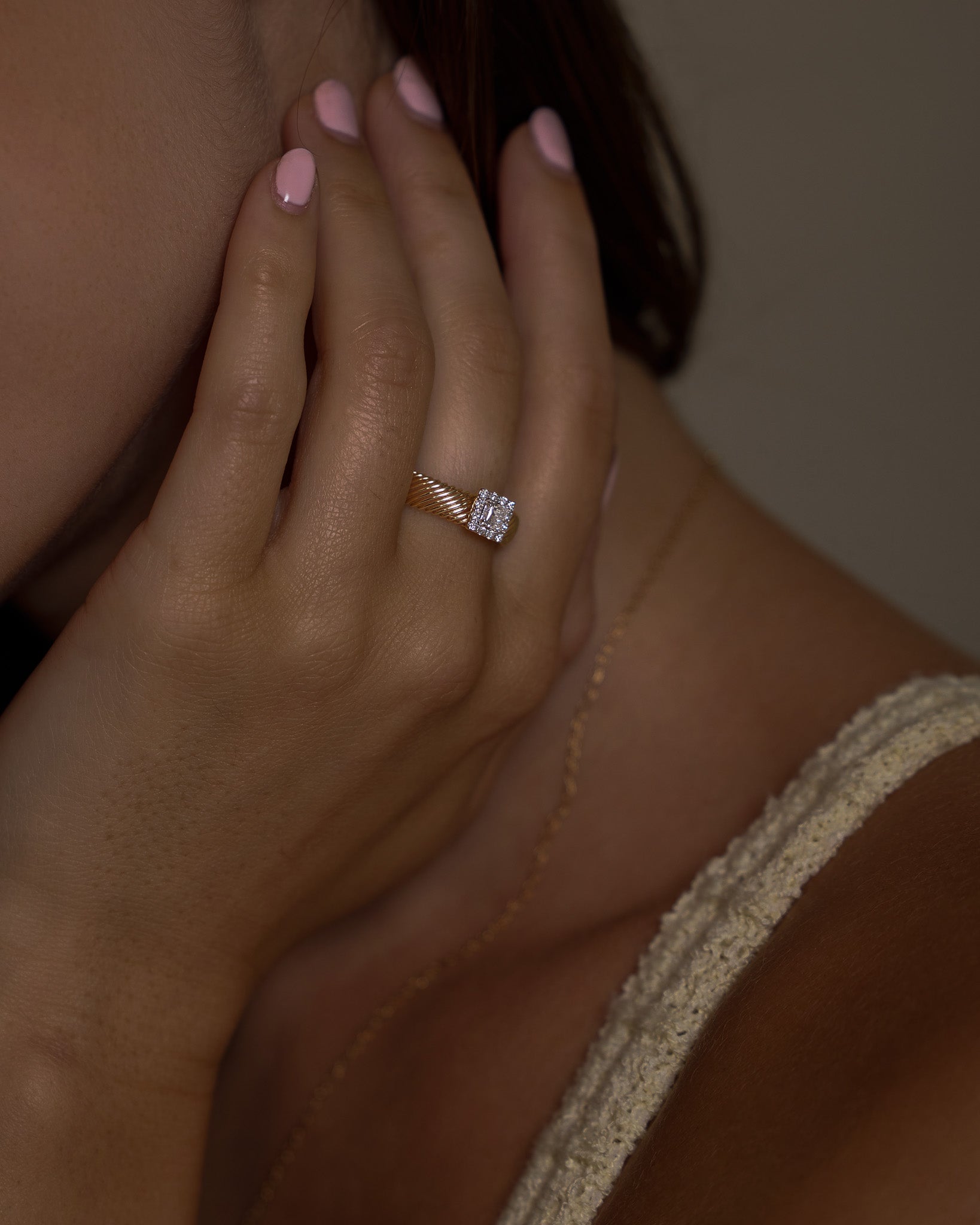A sculptural cable band finished with a princess-cut lab-grown diamond at the center. The structured silhouette balances strength and refinement, making it a standout piece that still feels wearable for everyday styling.
