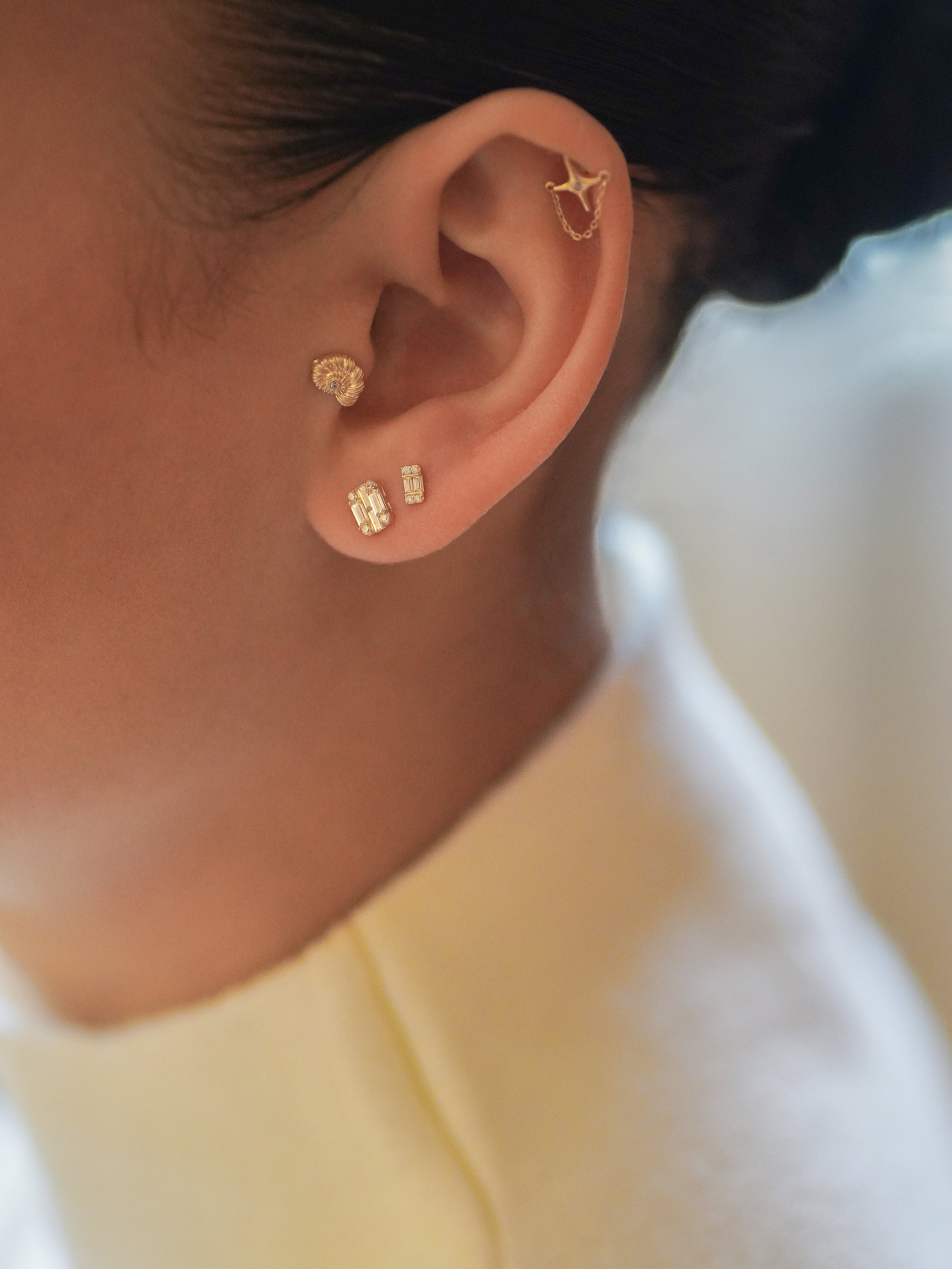 14K North Star Flare Chain Stud Earring