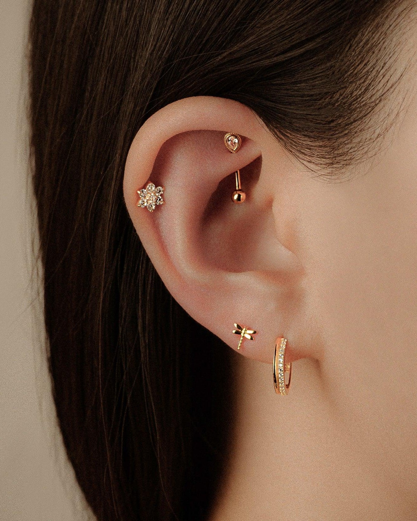 - Metales: oro macizo de 14 quilates.