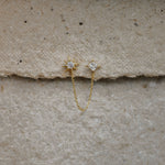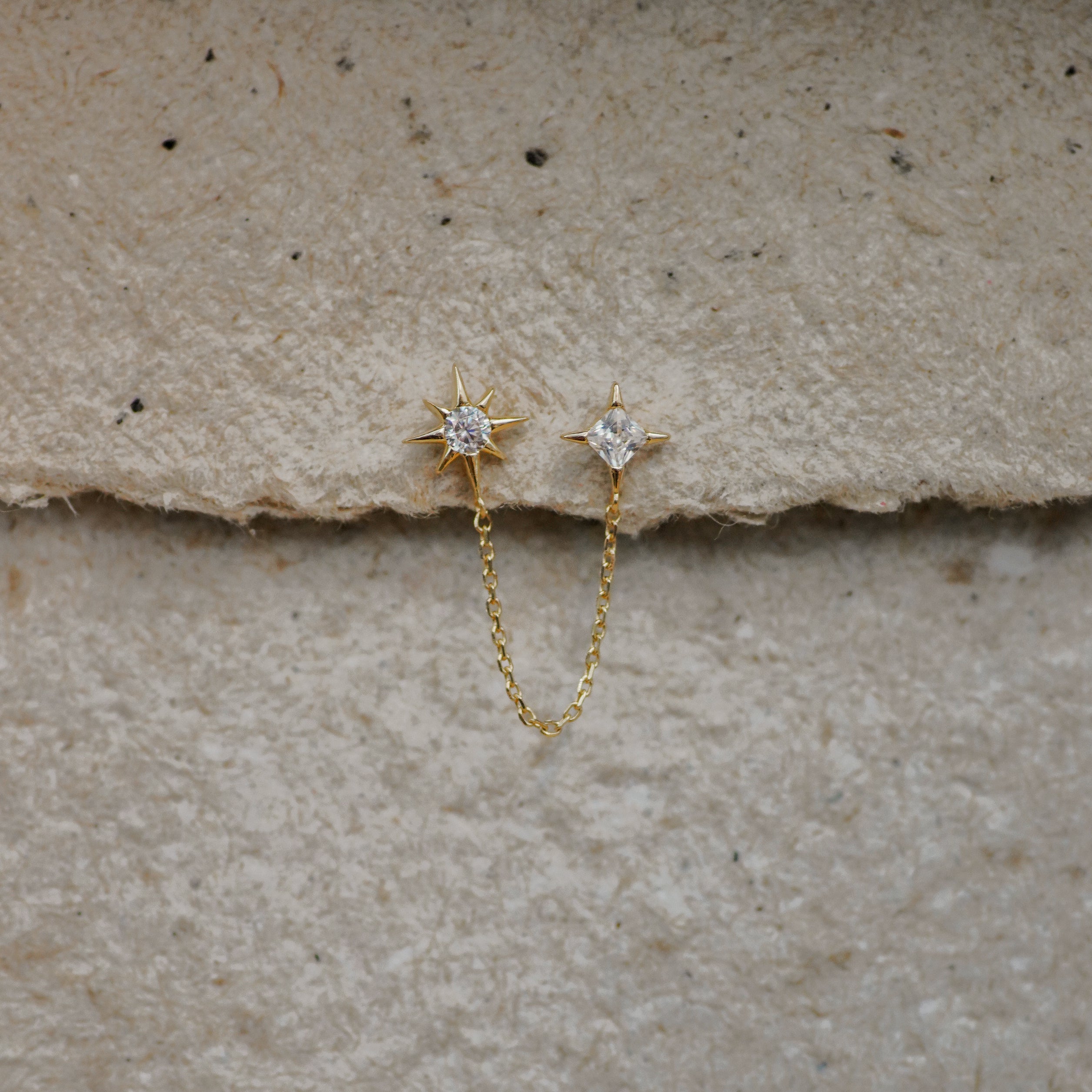 14K Solid Gold Twin Star Chain Double Stud Earring – Anygolds