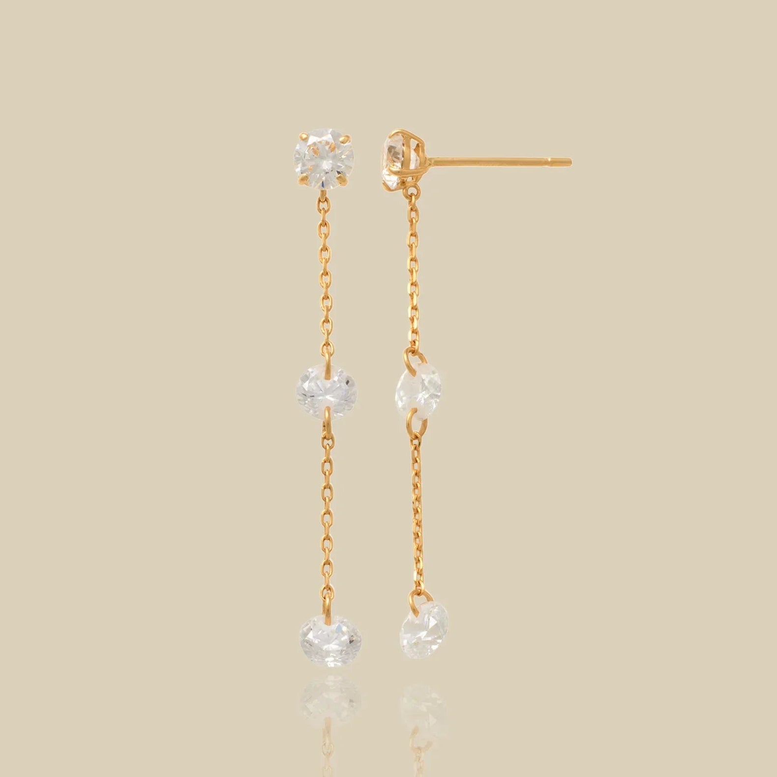 14K Solid Gold Triple Round Bar Chain Drop Earrings – Anygolds