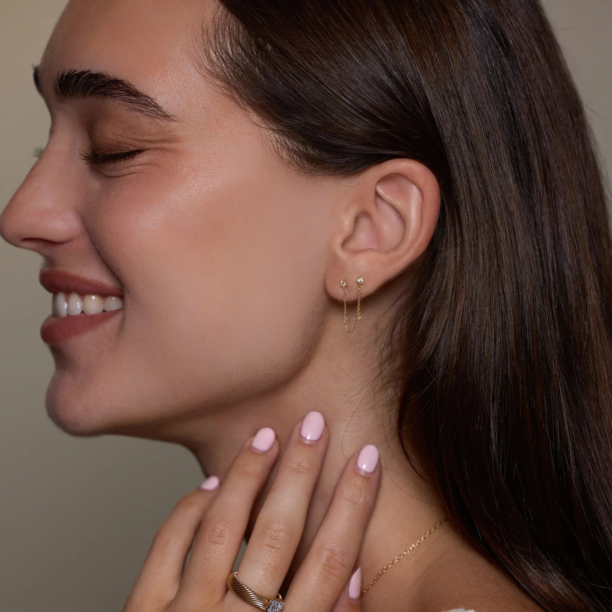 Minimal Sparkle Chain Double Stud Earring