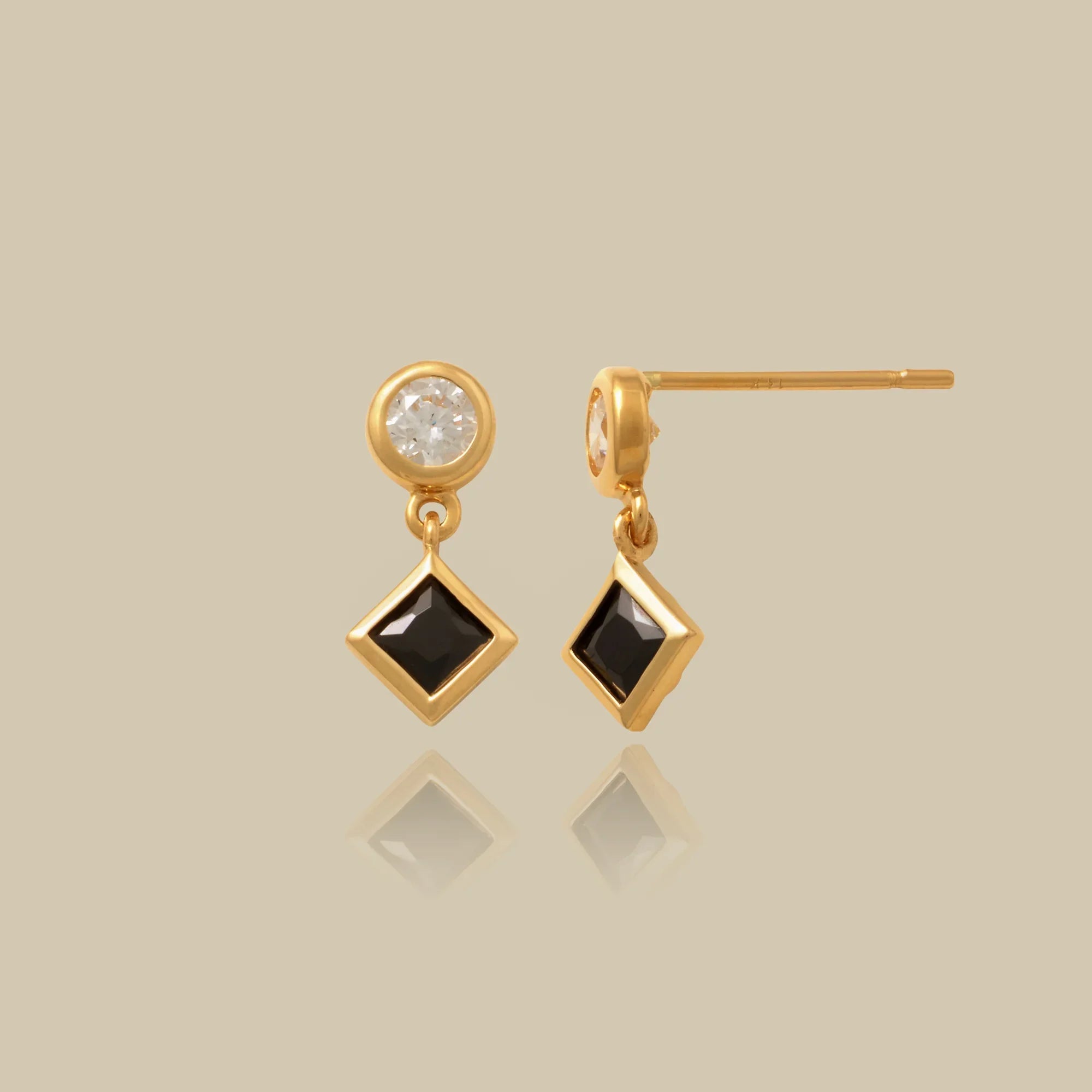 14K Solid Gold Onyx Black Diamond Drop Stud Earrings – Anygolds
