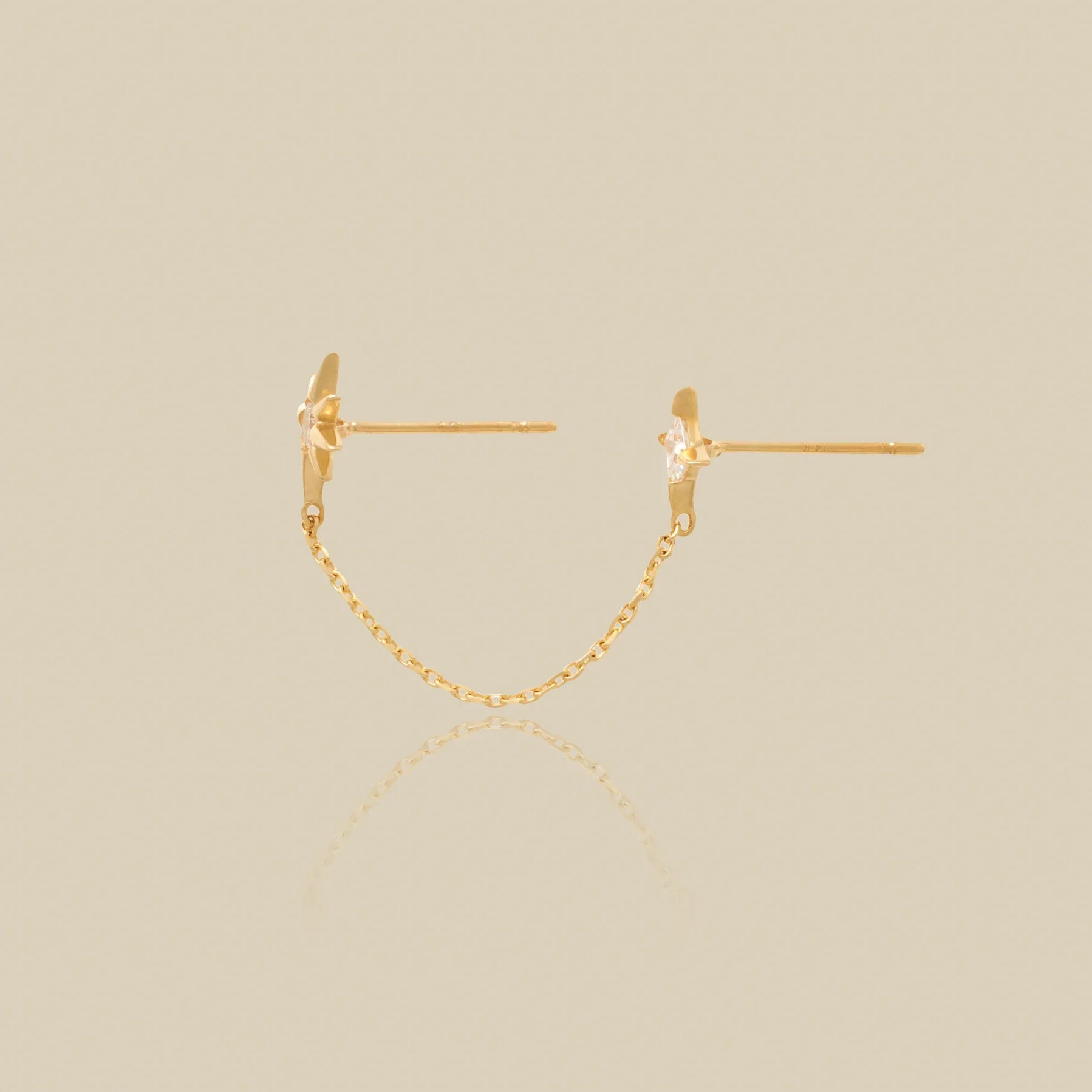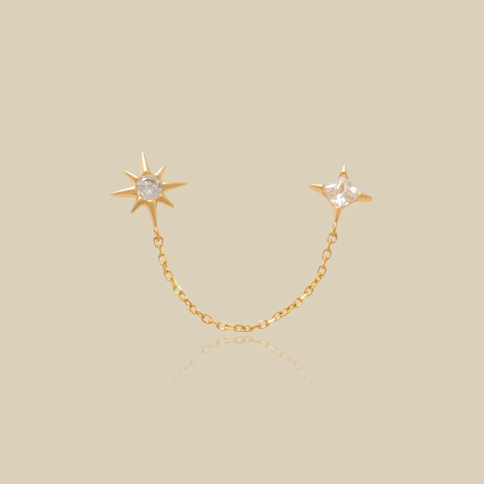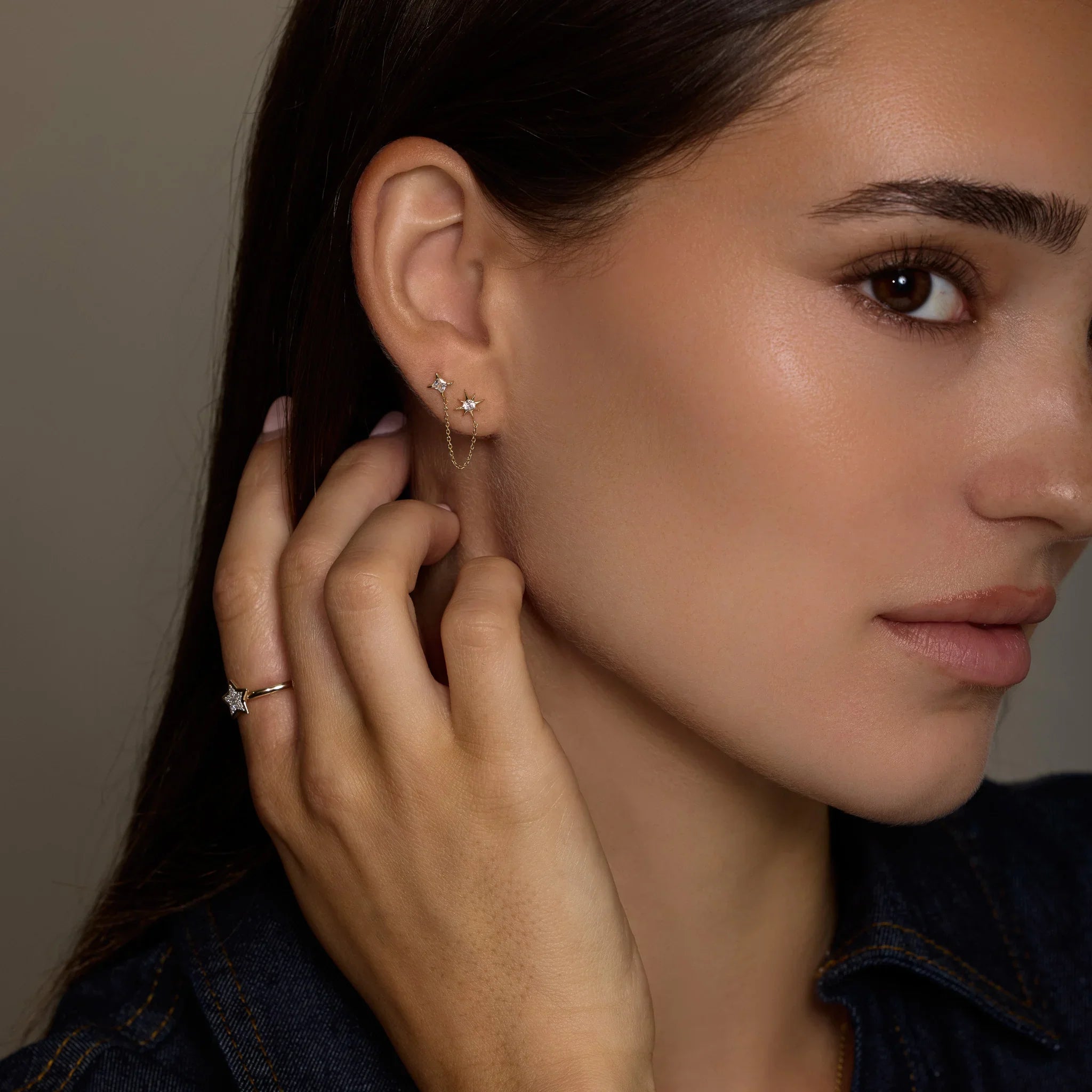 14K Solid Gold Twin Star Chain Double Stud Earring – Anygolds