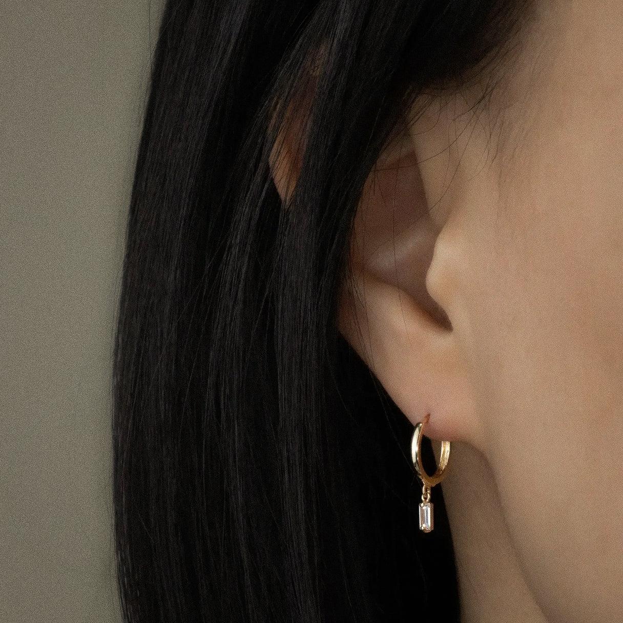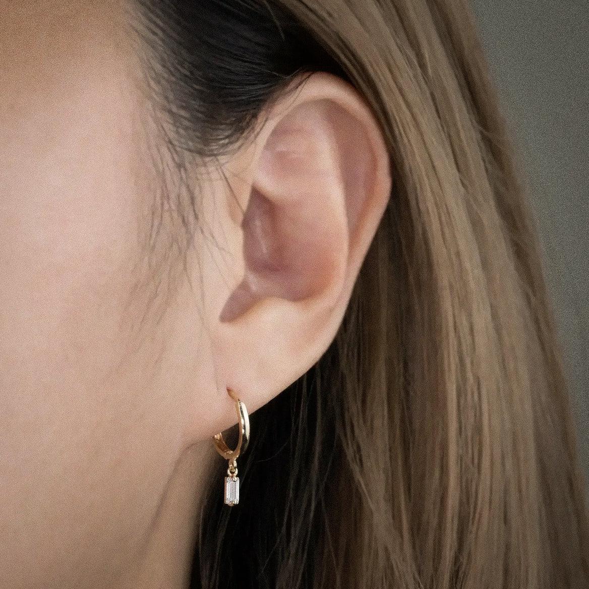 14K Solid Gold Mini Square Drop Hoop Earrings – Anygolds