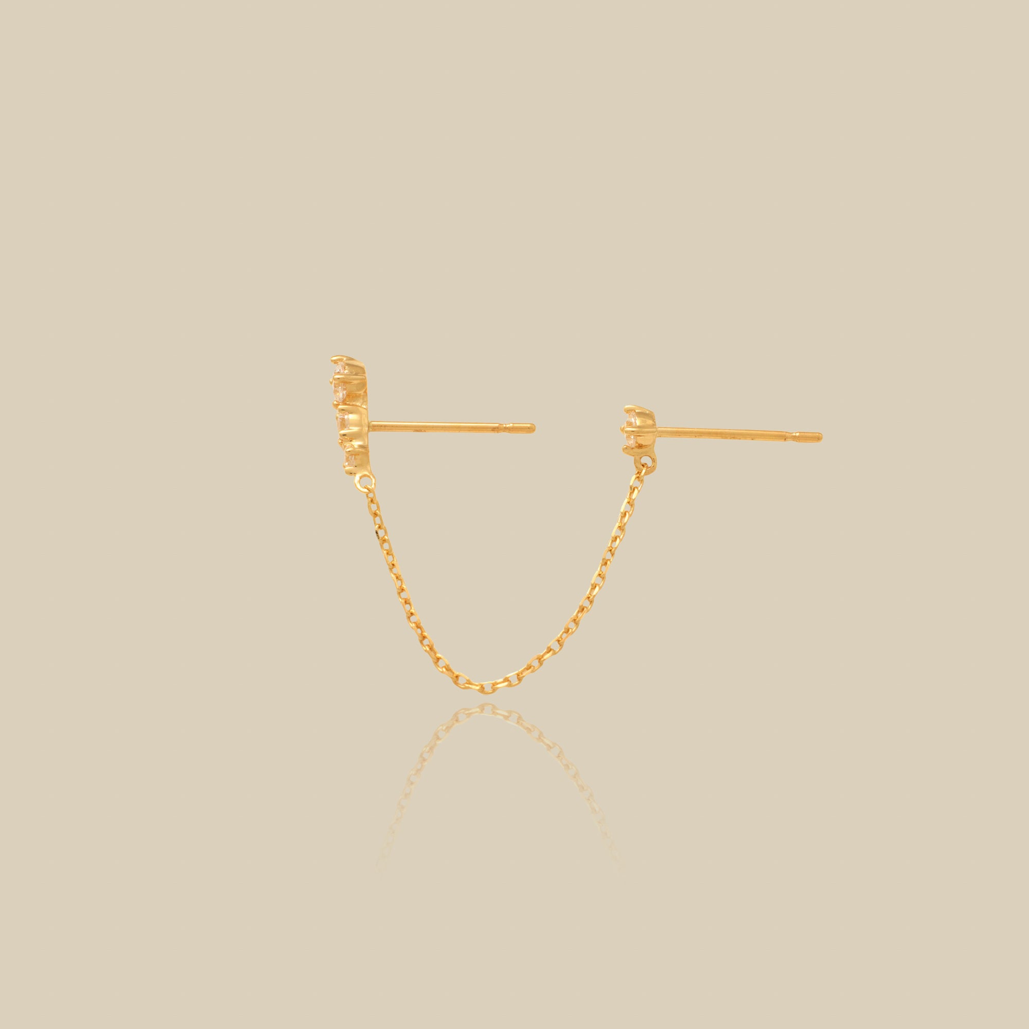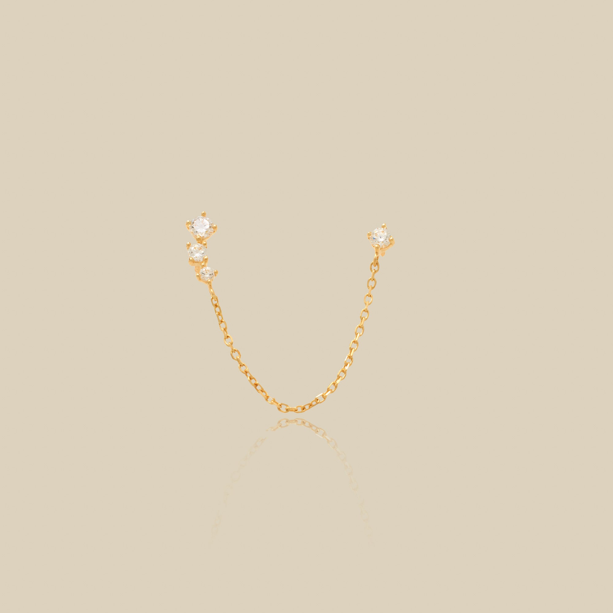 14K Solid Gold Dainty CZ Chain Double Stud Earring – Anygolds