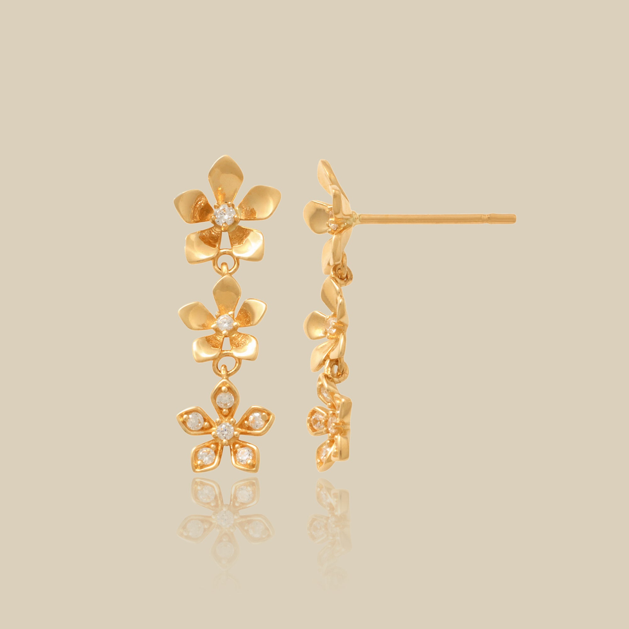 14K Solid Gold Triple Flower Drop Stud Earrings – Anygolds