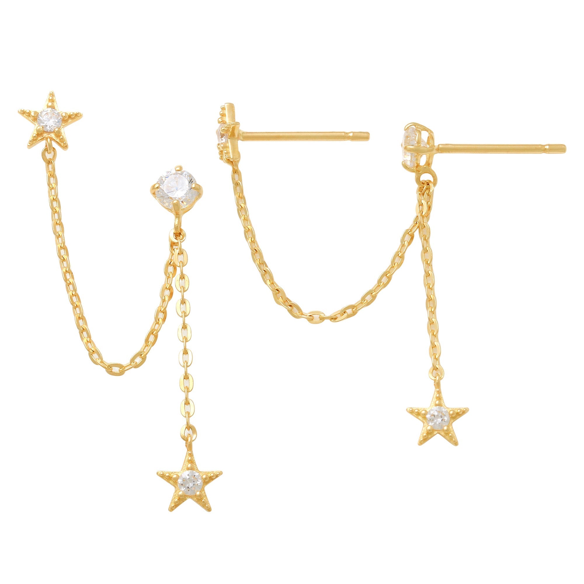 14K Solid Gold Cubic Zirconia Drop Earrings