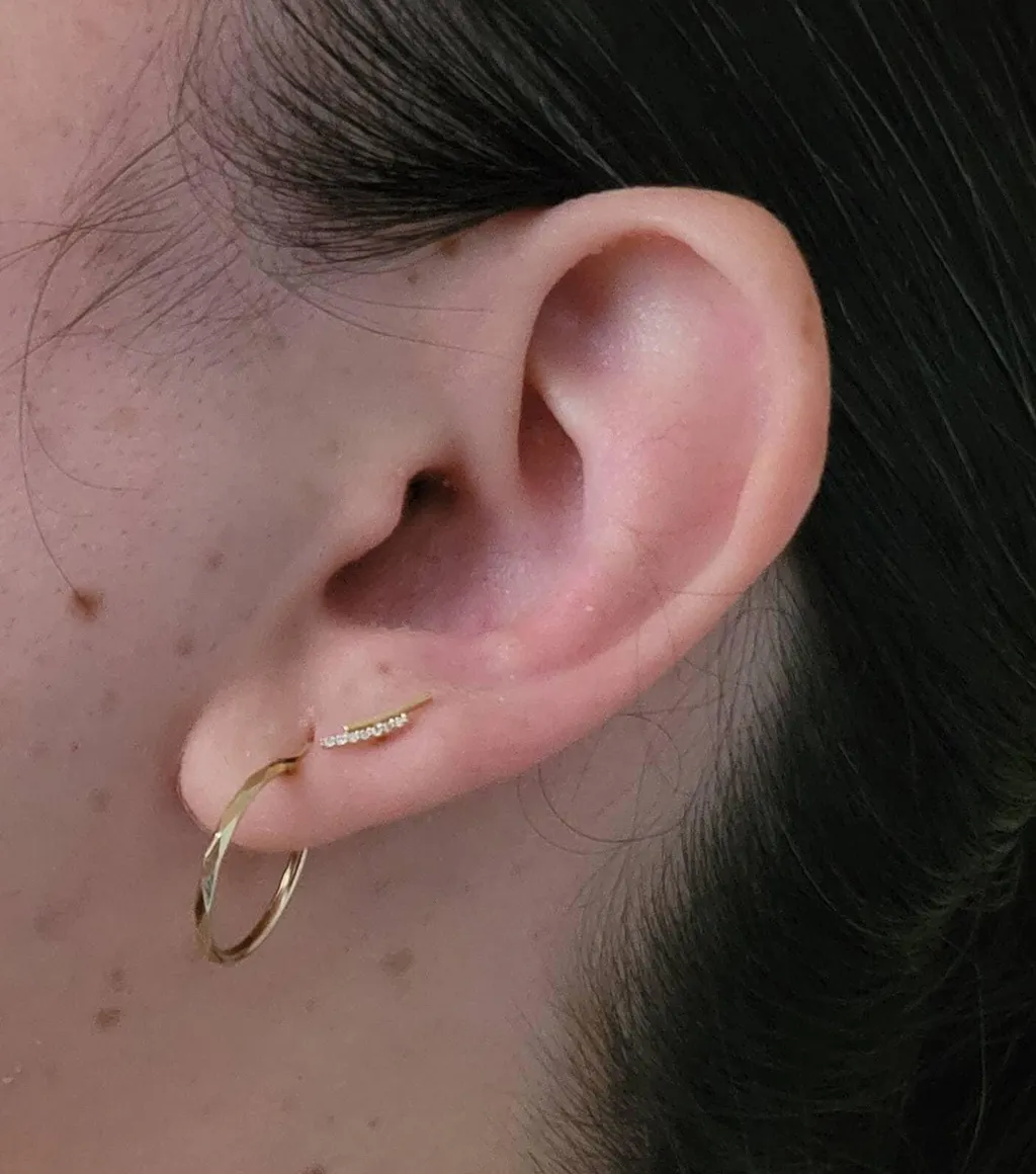 Ellen This is super dainty and beautiful! Little hard to get on and I was worried it was too tight for a conch but it really adds a little something. Didn't get in the way of headphones either. I love it!