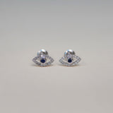 14K Real Solid Gold Evil Eye Stud Earrings featuring a striking blue sapphire center surrounded by genuine natural diamonds. These earrings combine the timeless allure of fine gemstones with the symbolic protection of the evil eye. Perfect for everyday wear or special occasions, they offer a meaningful and radiant addition to your jewelry collection.